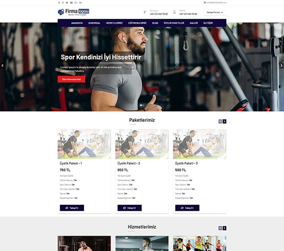 Spor salonu, fitness, Gym salonları için hazırlanan web site paketi... Yönetim paneli sayesinde site içeriğini dilediğiniz zaman kolay bir şekilde düzenleyebilirsiniz.