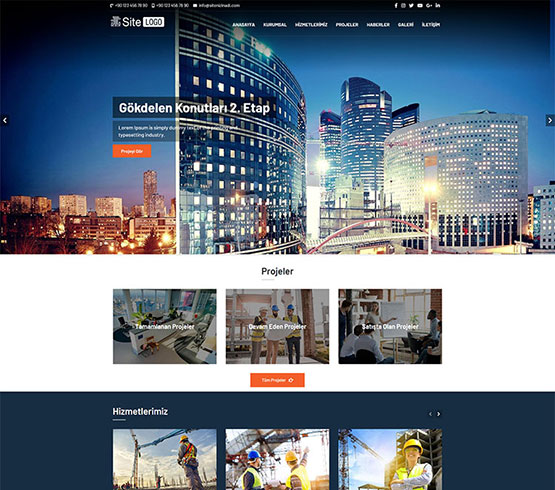 İnşaat ve yapı firmaları için hazırlanmış olan yönetim panelli hazır web sitesi paketi. Yönetim paneli sayesinde site içeriğini dilediğiniz zaman kolay bir şekilde düzenleyebilirsiniz.