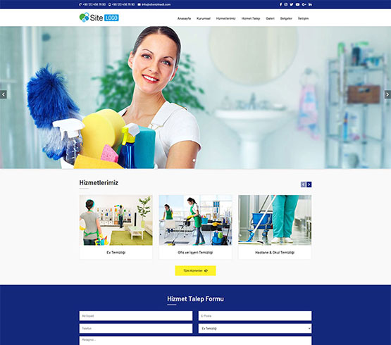Temizlik hizmetleri alanında faaliyet gösteren firmalar için hazırlanan hazır web sitesi paketi... Yönetim paneli sayesinde site içeriğini dilediğiniz zaman kolay bir şekilde düzenleyebilirsiniz.
