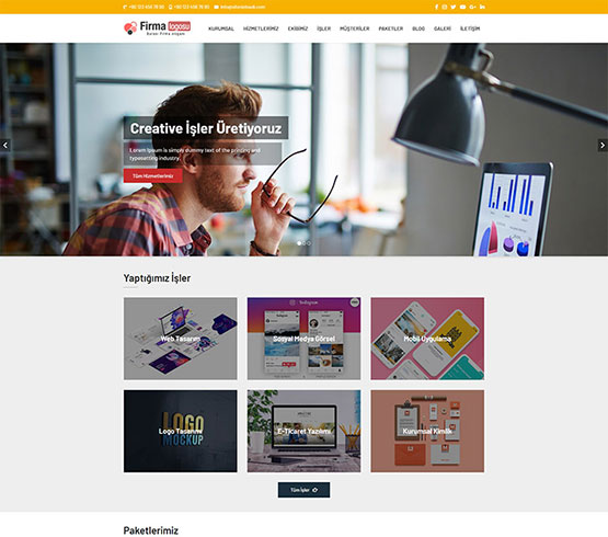 Reklam Ajansları Web Yazılım firmaları için tasarlanan web sitesi paketi... Yönetim paneli sayesinde site içeriğini dilediğiniz zaman kolay bir şekilde düzenleyebilirsiniz.